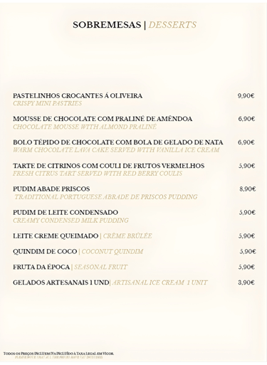 Sobremesas que encerram a refeição com doçura e elegância.